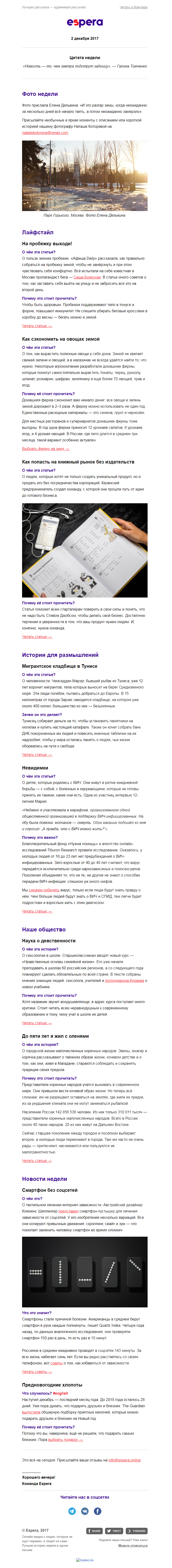 Рассылка Espera от 2 декабря 2017