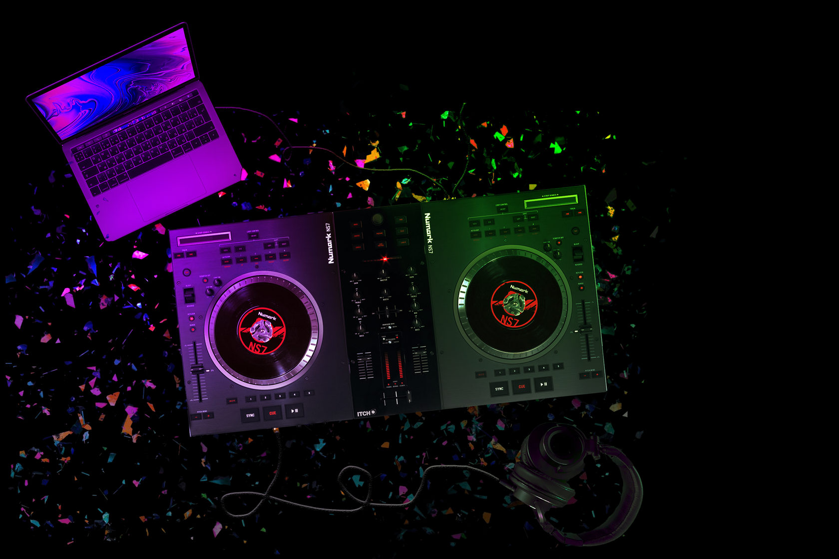 Numark NS7 — профессиональный сетап со встроенной звуковой картой. С его помощью диджей управляет музыкой на компьютере. На NS-7 удобно сводить и писать миксы, скретчить и джаглить.